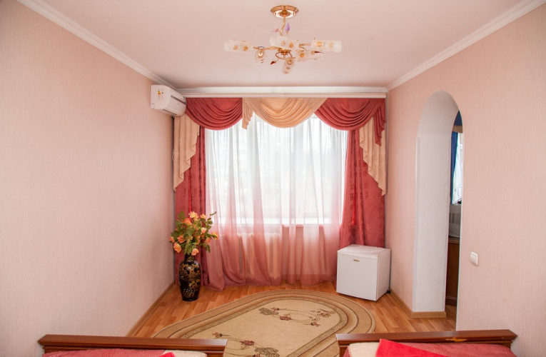 Оснащение: двухкомнатный, двухместный номер с уютной гостиной. Оснащен кондиционером, холодильником, телевизором. В номере имеется душевая комната. Одноразовые : мыло, шампунь, гель для душа, зубные наборы, тапочки.